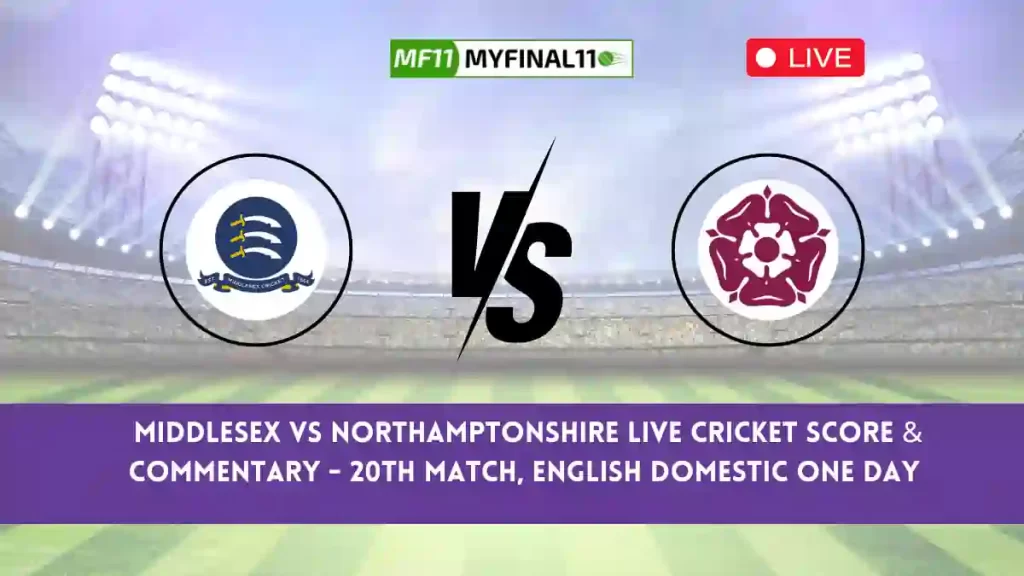 MID vs NOR Live Score — The Middlesex vs Northamptonshire match in the English Domestic One Day 2024 is set for July 29, 2024, at 03:30 PM IST at Radlett Cricket Club, Radlett.