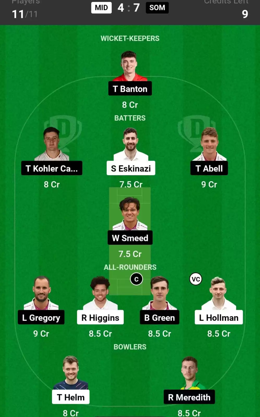 MID vs SOM Dream11 Team Prediction & Match Preview