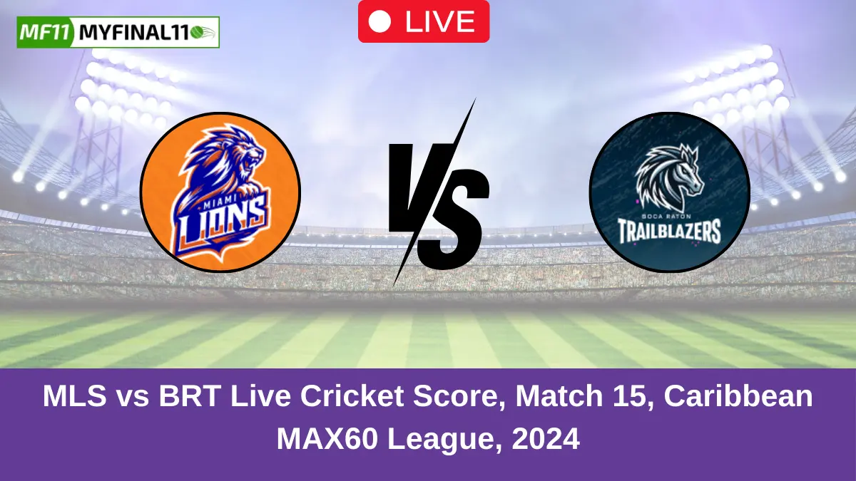 MLS vs BRT Live Cricket Score — The Miami Lions (MLS) vs Boca Raton Trailblazers (BRT) Match 15 in the MAX60 League is set for August 22, 2024 10:00 PM IST, at JImmy Powell Oval.