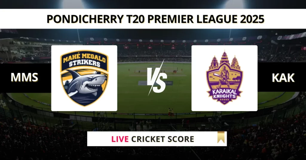 Catch the excitement of the Pondicherry T20 League 2025 as MMS faces off against KAK in Match 26 Get live score updates, match stats, and commentary straight from Cricket Association Puducherry Siechem Ground on July 20, 2025 6:00 PM IST.