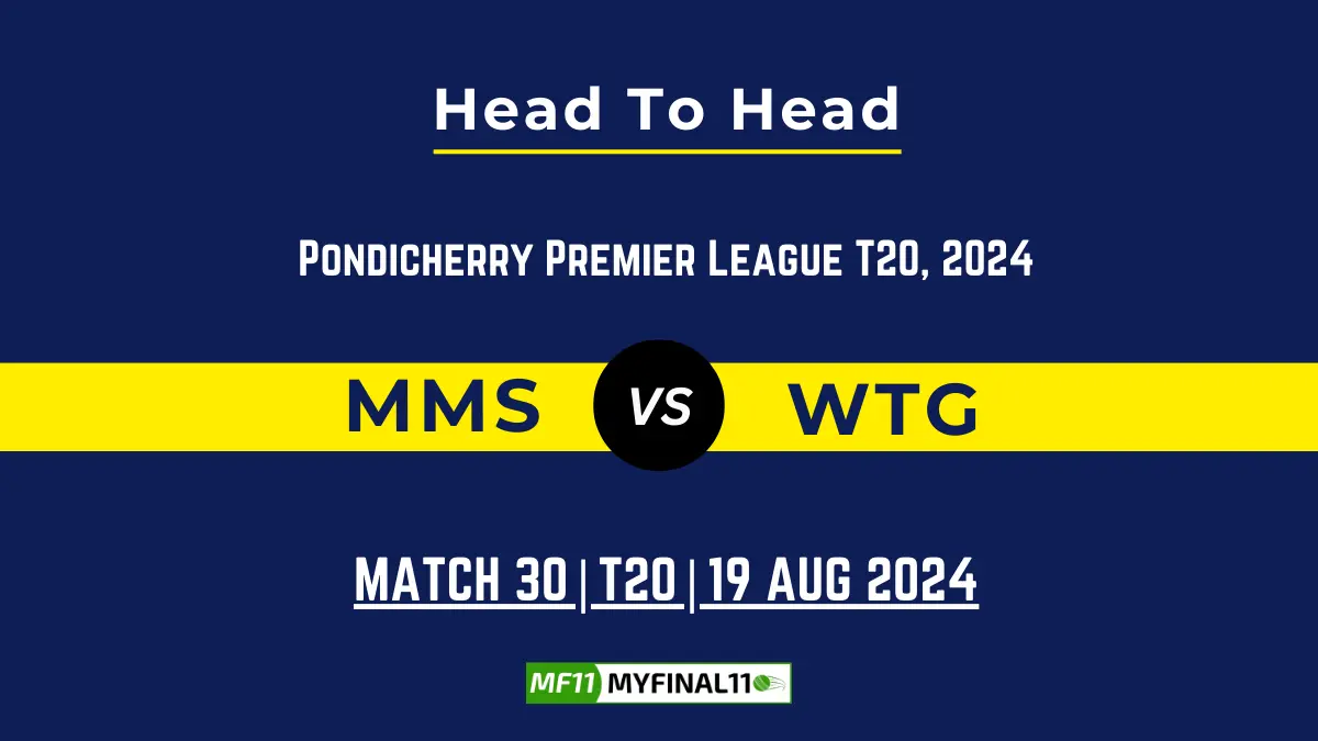 Get all the MMS vs WTG player battles, Stats, records, and head-to-head between Mahe Megalo Strikers (MMS) and White Town Giants (WTG). This is the 30th Match of the Pondicherry T20 Premier League 2024 tournament, held at Cricket Association Puducherry Siechem Ground, Puducherry, on August 19th, 2024, at 06:45 PM IST.