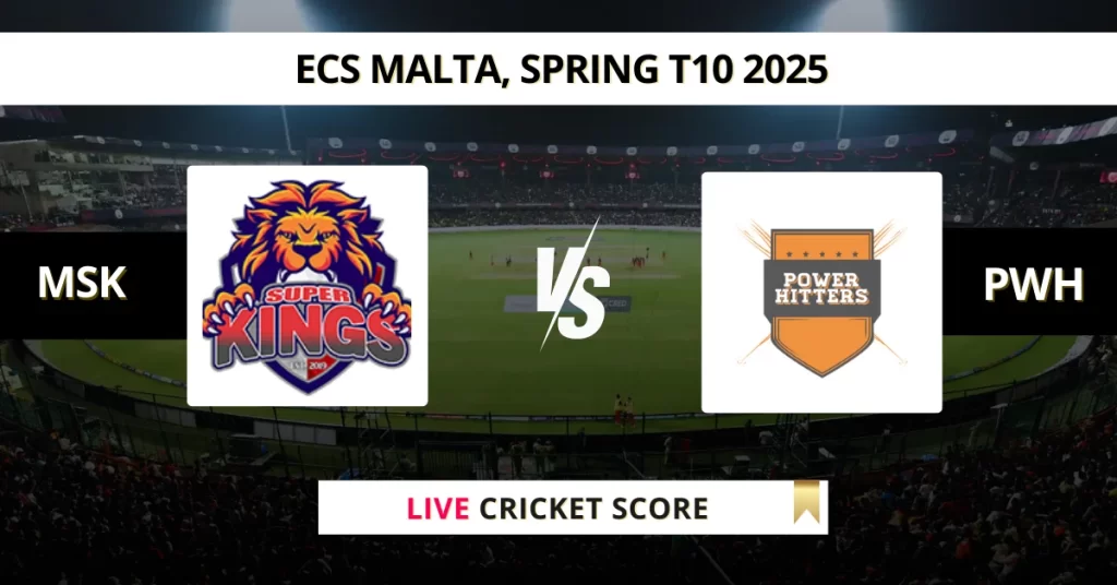 MSK vs PWH Live Cricket Score — The Malta Super Kings (MSK) vs Power Hitter (PWH) Match 16 in the ECS T10 Malta 2025 2025 is set for May 1, 2025, 12:45 PM IST, at Marsa Sports Club.