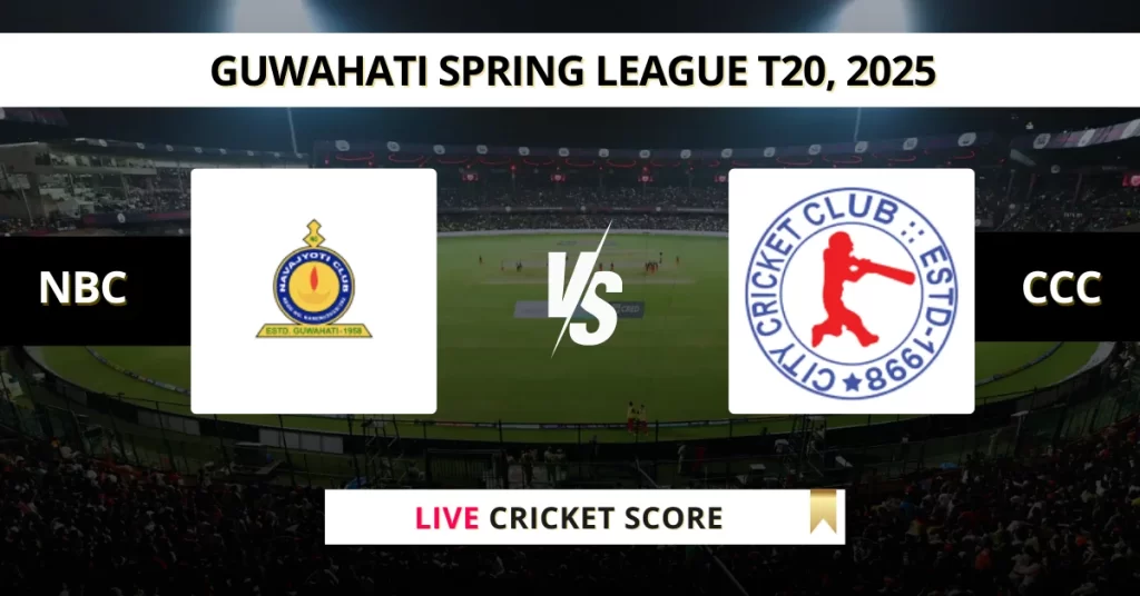 NBC vs CCC Live Cricket Score — The Nabajyoti Club (NBC) vs City Cricket Club (CCC) Match 3 in the Guwahati T20 Spring League 2025 is set for April 18, 2025 9:00 AM IST, at Judges Field, Guwahati.