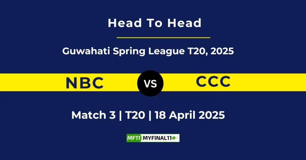 NBC vs CCC Player Battle, Head-to-Head Team Stats & Records and more: Today in Guwahati T20 Spring League 2025, Nabajyoti Club (NBC) will take on City Cricket Club (CCC) at Judges Field, Guwahati, on 18th April 2025 at 9:00 AM.