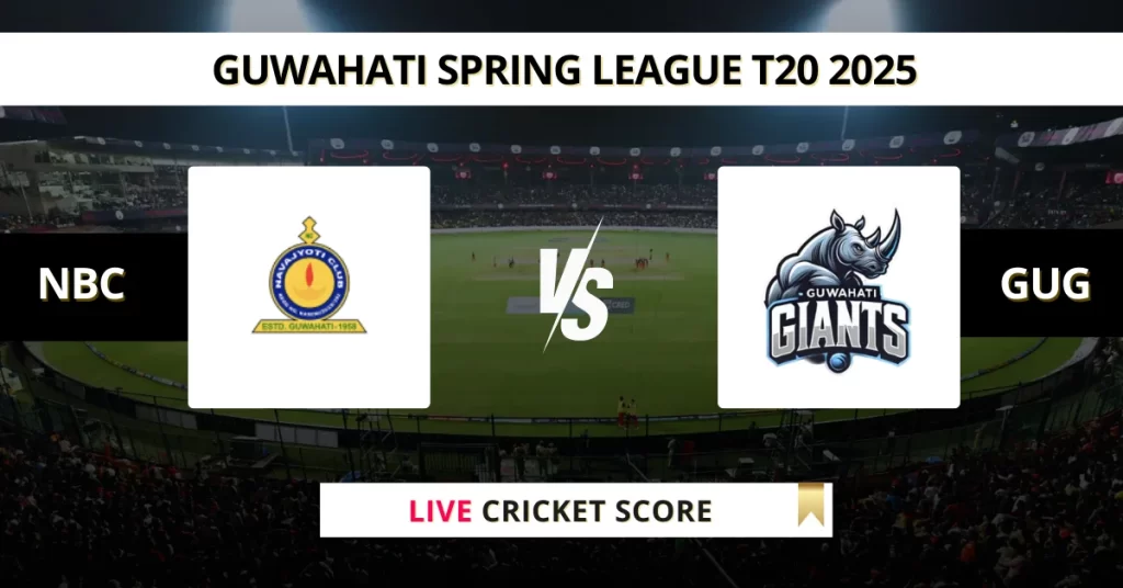 NBC vs GUG Live Cricket Score — The Nabajyoti Club (NBC) vs Guwahati Giants (GUG) Match 10 in the Guwahati T20 Spring League 2025 is set for April 21, 2025, 1:00 PM IST, at Judges Field, Guwahati.