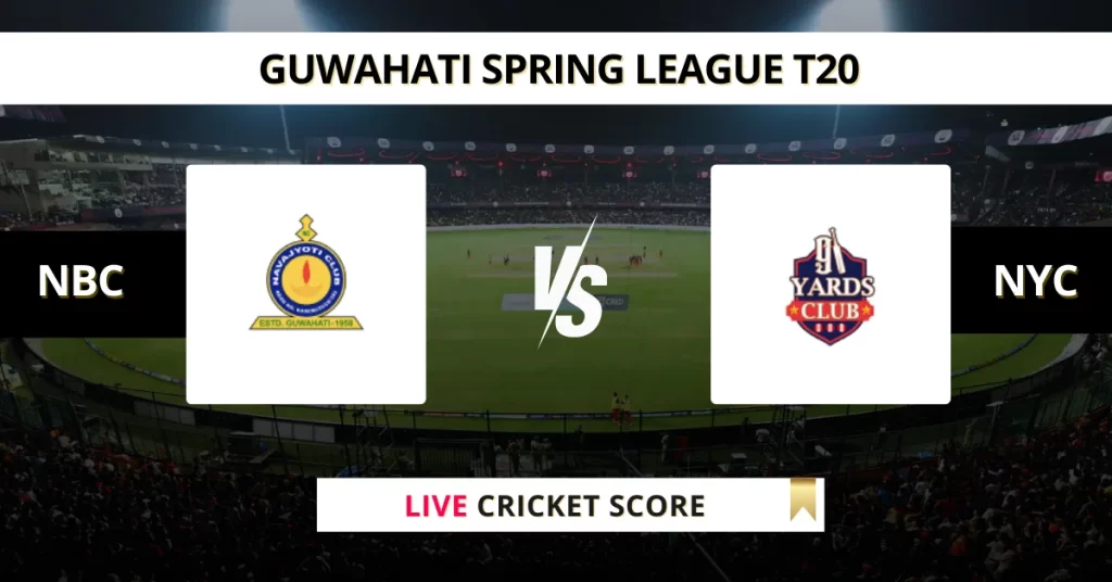 NBC vs NYC Live Cricket Score — The Nabajyoti Club (NBC) vs 91 Yard Club (NYC) Match 8 in the Guwahati T20 Spring League 2025 is set for April 20, 2025, 1:00 PM IST, at Judges Field, Guwahati.