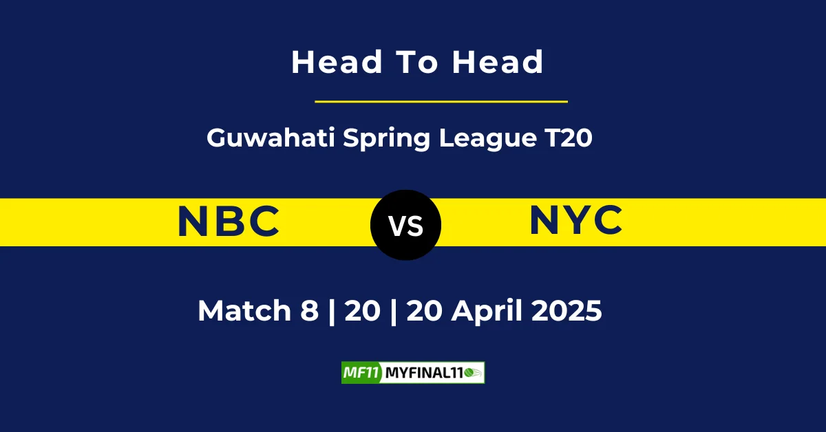 NBC vs NYC Player Battle, Head-to-Head Team Stats & Records and more: Today in Guwahati T20 Spring League 2025, Nabajyoti Club (NBC) will take on 91 Yard Club (NYC) at Judges Field, Guwahati, on 20th April 2025 at 1:00 PM.