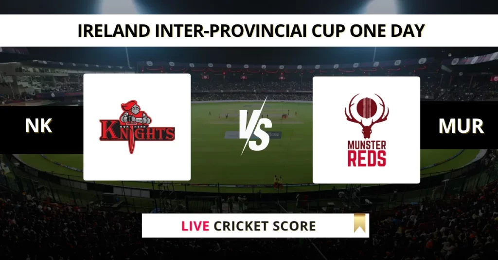 NK vs MUR Live Cricket Score — The Northern Knights (NK) vs Munster Reds (MUR) Match 6 in the Ireland Inter-Provincial Cup One Day 2025 is set for May 15, 2025, 3:15 PM IST, at Civil Service Cricket Club, Stormont, Belfast.
