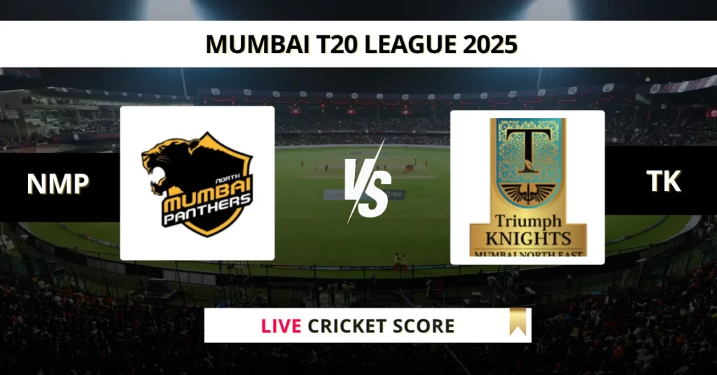 NMP vs TK Live Cricket Score — The North Mumbai Panthers (NMP) vs Triumph Knights MNE (TK) Match 19 in the T20 Mumbai 2025 is set for June 8, 2025, 5:30 PM IST, at Dr DY Patil Sports Academy, Mumbai.