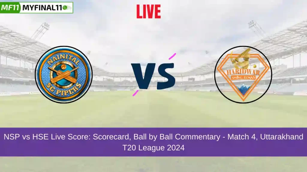 NSP vs HSE Live Cricket Score — The Nainital SG Pipers (NSP) vs Haridwar Spring Elmas (HSE) Match 4 in the Uttarakhand T20 League 2024 is set for September 17, 2024, 3:00 PM IST, at Rajiv Gandhi International Cricket Stadium, Dehra Dun.