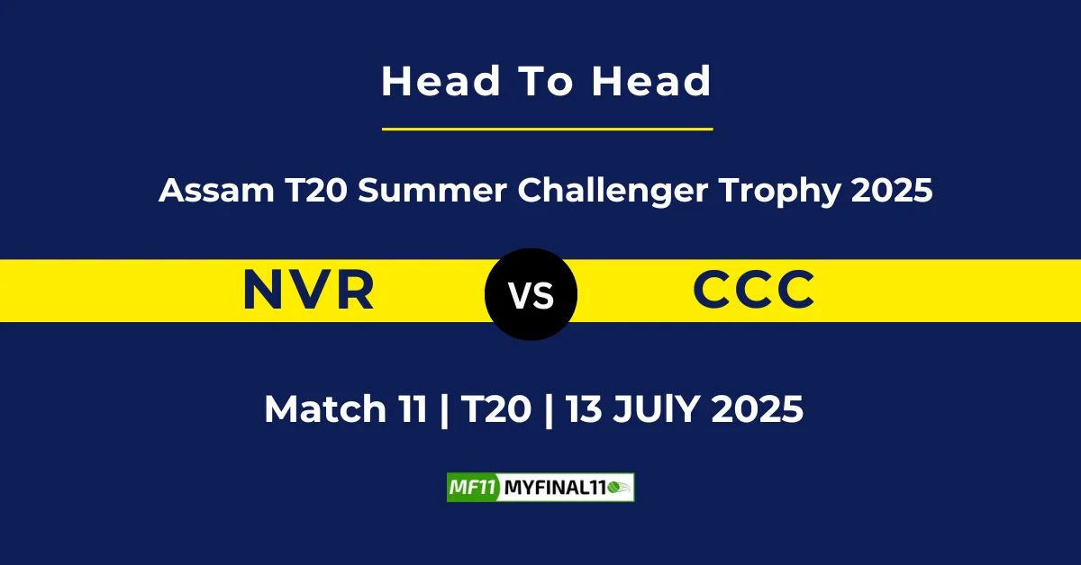 NVR vs CCC Player Battle, Head-to-Head Team Stats & Records and more: Today in Assam T20 Summer Challenger Trophy (2025), Nabarang Club (NVR) will take on City Cricket Club (CCC) at Judges Field, Guwahati, on 13th July 2025 at 9:30 AM.