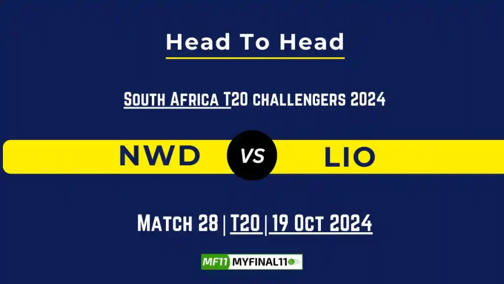 Get all the NWD vs LIO player battles, records, and head-to-head between North West Dragonsand Lions. This is the 28th South Africa T20 Challenge 2024tournament match, held at The Wanderers Stadium, Johannesburg, on Oct 19th, 2024, at 5:30 PM IST.