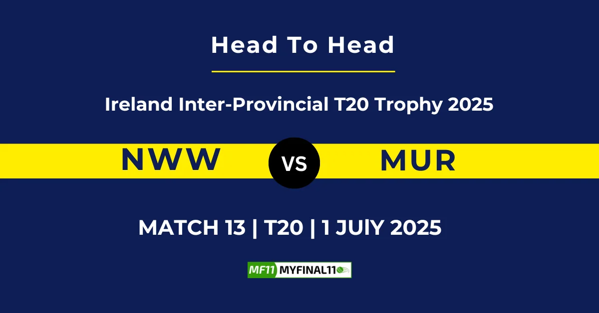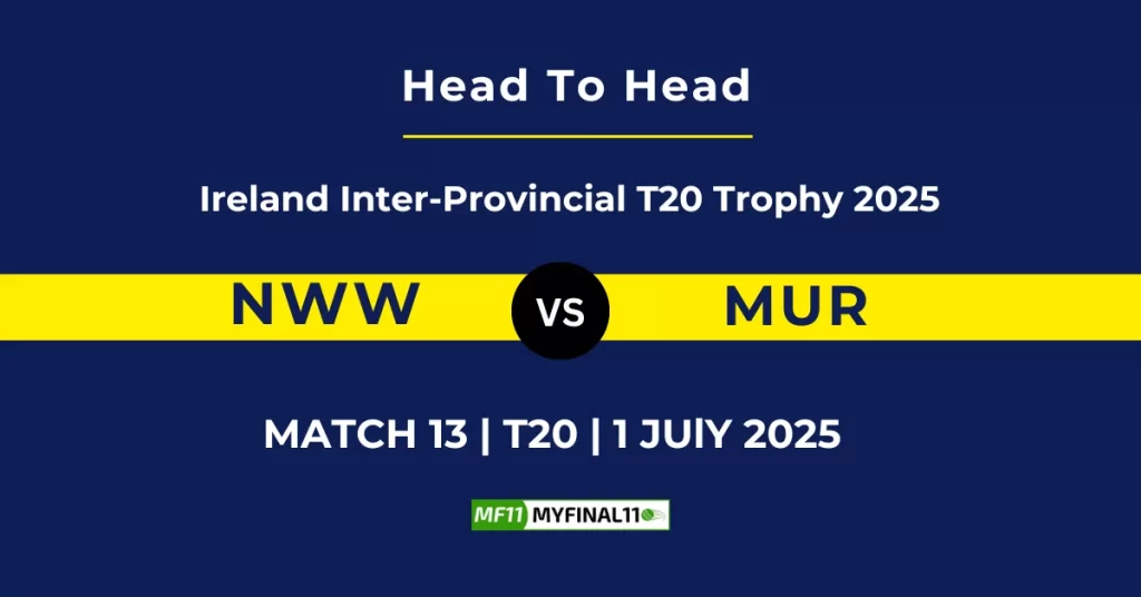 NWW vs MUR Player Battle, Head-to-Head Team Stats & Records and more: Today in Ireland Inter Provincial Trophy T20 2025, North-West Warriors (NWW) will take on Munster Reds (MUR) at Bready Cricket Club, Magheramason, Bready, on 1st July 2025 at 3:15 PM.