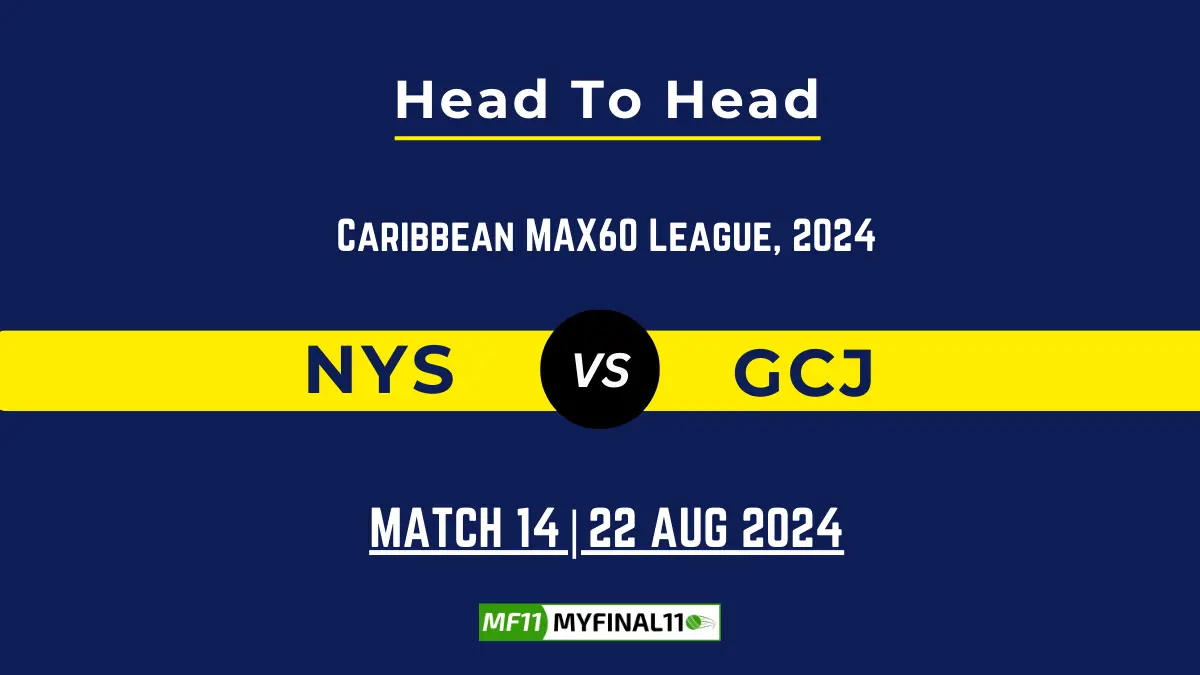 Get all the NYS vs GCJ player battle stats, records, and head-to-head between New York Strikers (NYS) and Grand Cayman Jaguars (GCJ). This is the 14th Match of the Caribbean MAX60 League 2024 tournament, held in The Cayman Islands, Caribbean, on August 22nd, 2024, at 7:30 PM IST.