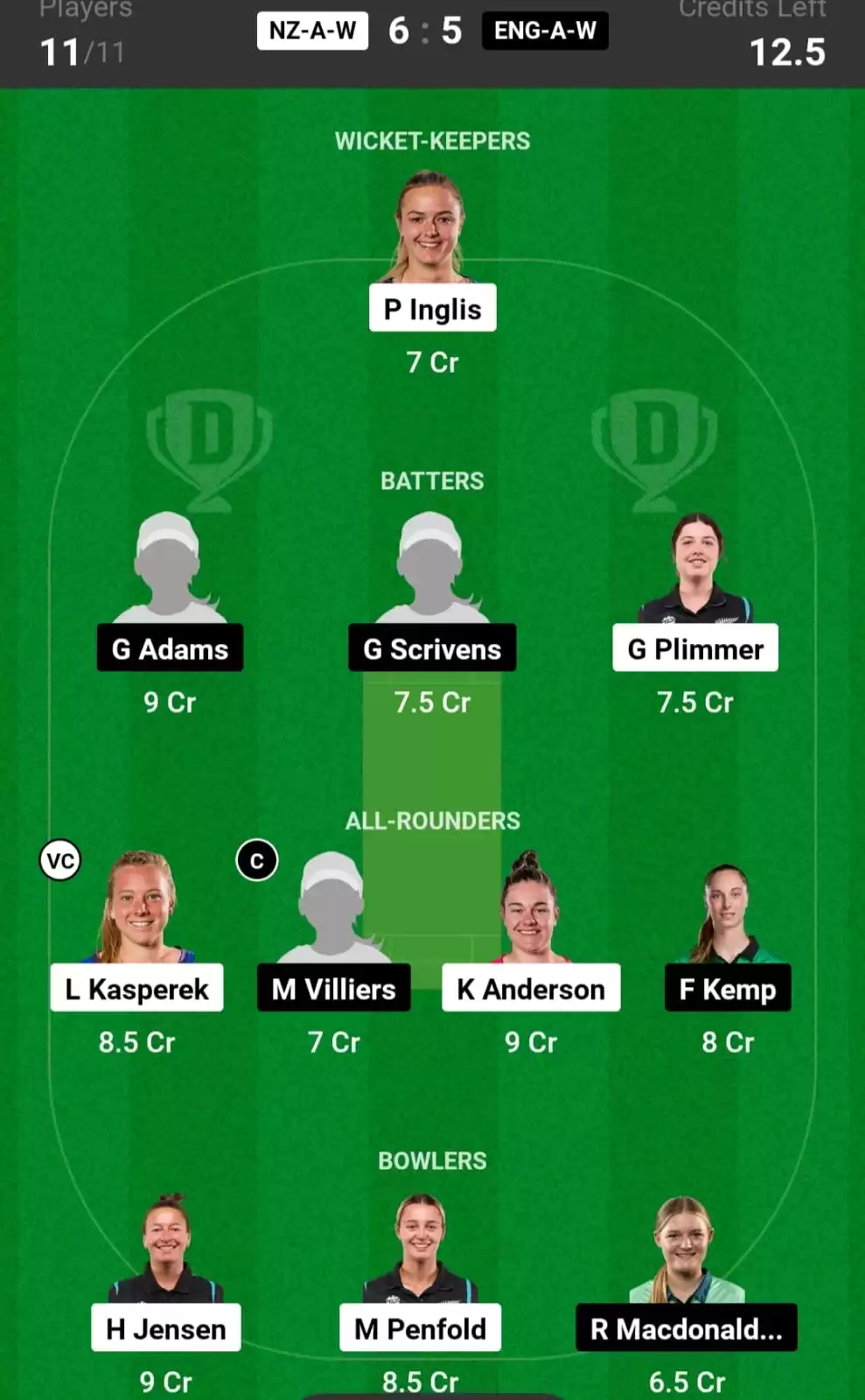 It is good to have a maximum no. of New Zealand A Women Batters and bowlers in your fantasy team that will help you score more fantasy points