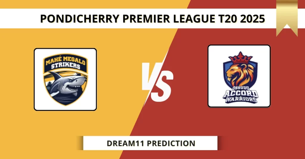 Dream11 Prediction & Match Overview – OAW vs MMS: The Pondicherry T20 League 2025 continues with Match 29 between Ossudu Accord Warriors and Mahe Megalo Strikers. The action unfolds at Cricket Association Puducherry Siechem Ground, Puducherry, on July 22, 2025, at 2:00 PM. Let’s look at the top player picks, pitch condition and key stats.