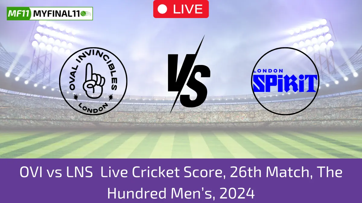 OVI vs LNS Live Cricket Score — The Oval Invincibles (Men) (OVI) vs London Spirit (Men) (LNS) 26th Match in the The Hundred Mens is set for August 11, 2024 7:00 PM IST, at Kennington Oval.