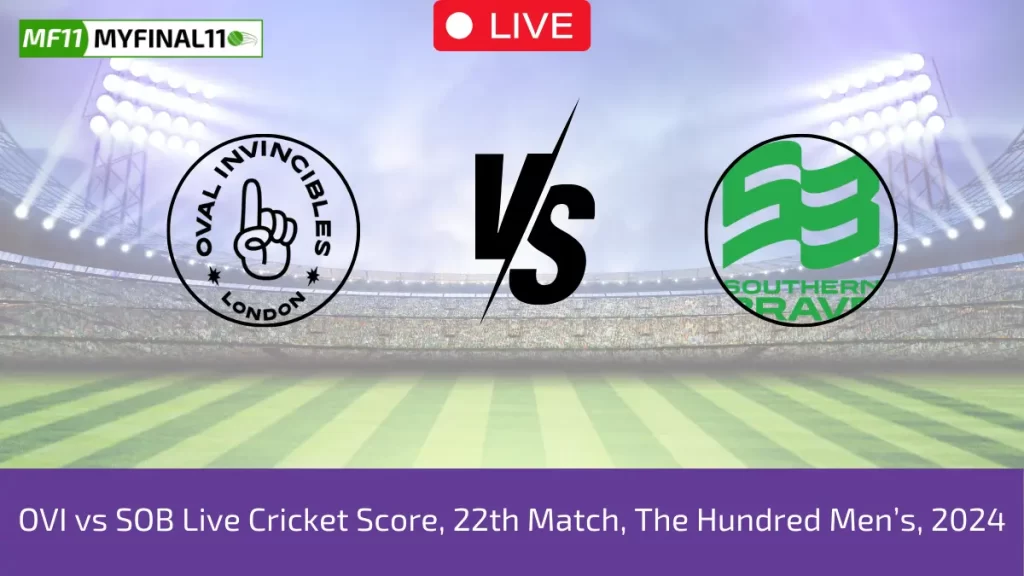 OVI vs SOB Live Cricket Score — The Oval Invincibles Men (OVI) vs Southern Brave Men (SOB) match in The Hundred Men, 2024 is set for August 8, 2024, 11:00 PM IST, at Kennington Oval, London.