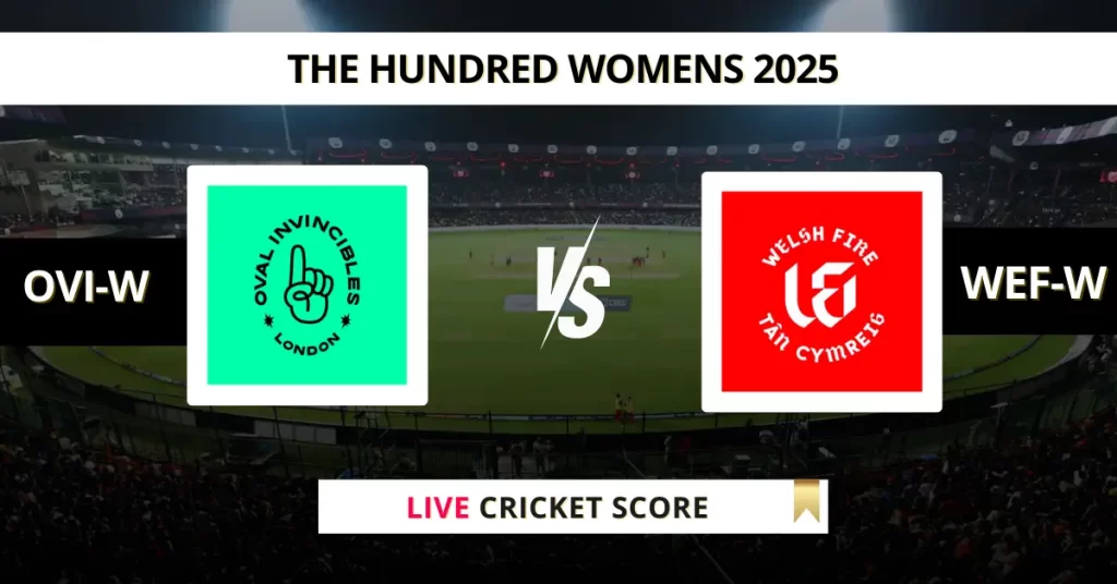 Get Live Score update of OVI-W vs WEF-W: Track the live match updates, scorecard, and key moments from Match 16 of The Hundred Womens 2025 happening at Kennington Oval today, August 16, 2025, 7:00 PM IST.