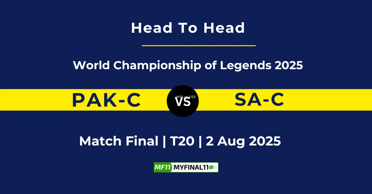 PAK-C vs SA-C Player Battle, Head-to-Head Team Stats & Records and more: Today in World Championship of Legends (2025), Pakistan Champions (PAK-C) will take on South Africa Champions (SA-C) at Edgbaston, Birmingham, on 2nd August 2025 at 9:00 PM.