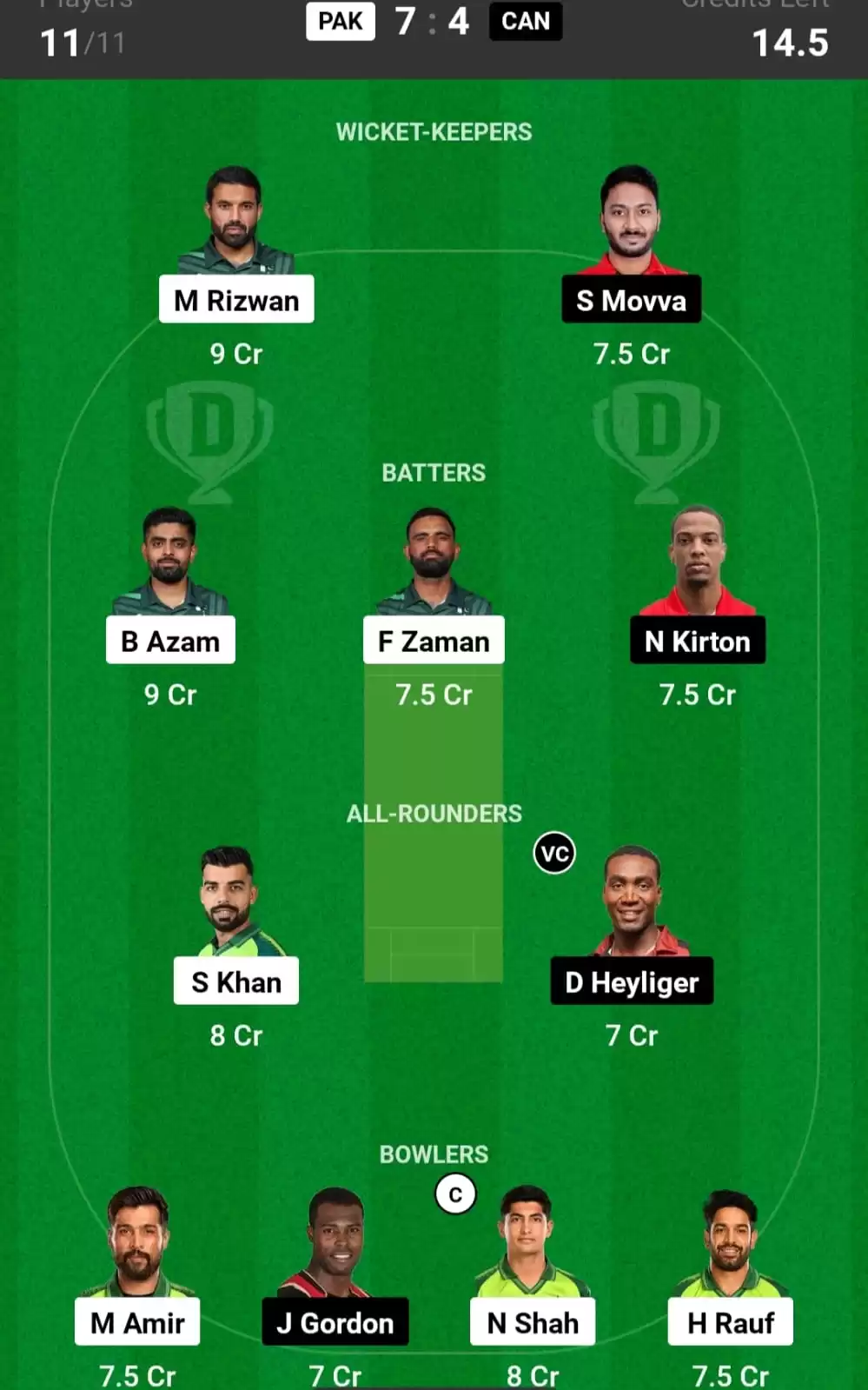 PAK vs CAN Dream11 Team Prediction & Match Preview