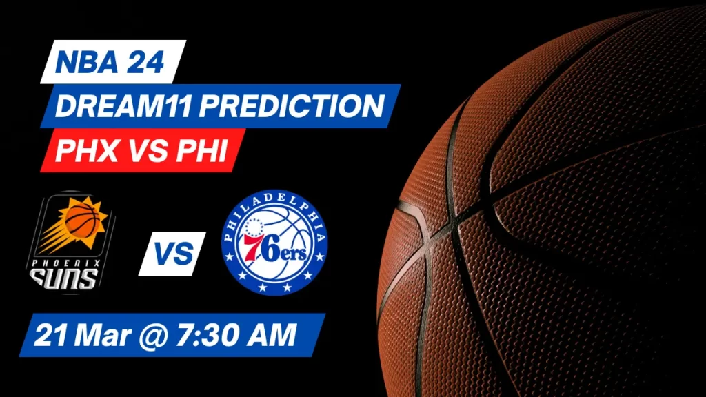 PHX vs PHI Dream11 Prediction NBA: Phoenix Suns and Philadelphia 76ers will face off in today’s NBA on March 21st, 2024. If you are looking for Today’s PHX vs PHI NBA Match Dream11 Prediction & Match Prediction then you are at the right place.