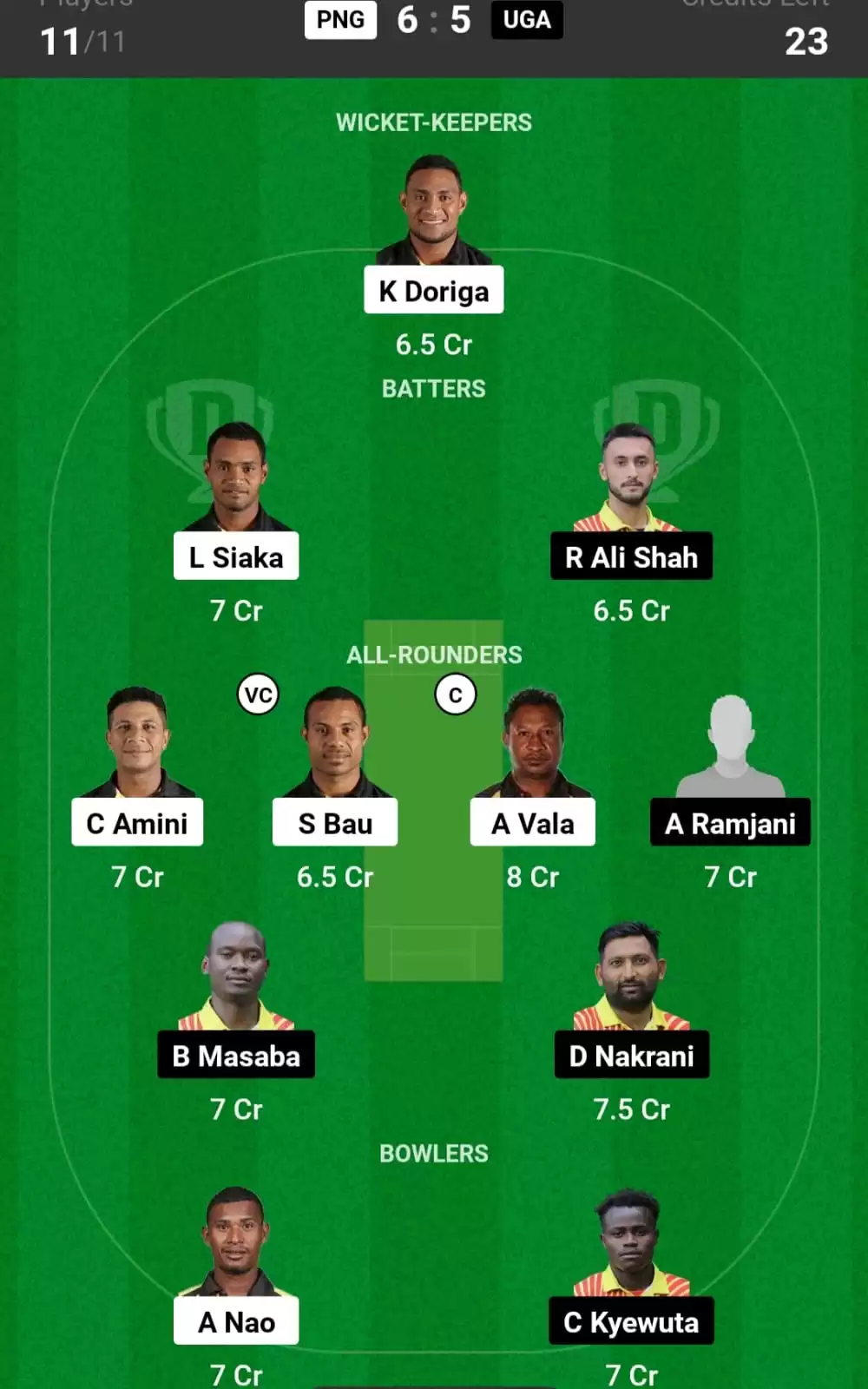 PNG vs UGA Dream11 Team Today – Assad Vala & Sese Bau will be the excellent option for C & VC