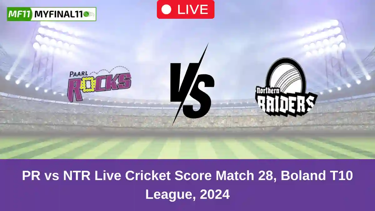 PR vs NTR Live Cricket Score — The Paarl Rocks (PR) vs Northern Raiders (NTR) Match 28 in the South Africa Boland T10 League 2024 is set for September 19, 2024 9:00 PM IST, at Boland Park.