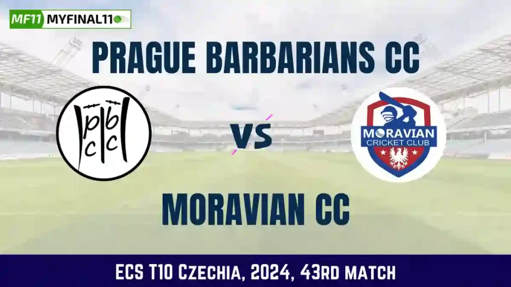 The 43rd match of the ECS T10 Czechia, 2024, will be between Prague Barbarians CC (PRB) and Moravian CC (MCC) at Scott Page Field, Vinor, Prague, on 25th June 2024 at 04:30 PM IST. If you are interested, you can find more information about the PRB vs MCC Dream11 Prediction Today Match, PRB vs MCC Dream11 Team Today, Playing 11, and Pitch Report & PRB vs MCC Player Stats in this article.