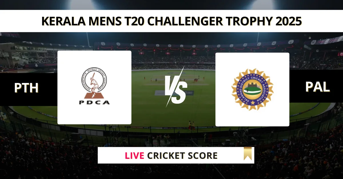 PTH vs PAL Live Cricket Score — The DCA Pathanamthitta (PTH) vs DCA Palakkad (PAL) Match 11 in the Kerala T20 Men’s Challenger Trophy 2025 is set for May 21, 2025, 8:45 AM IST, at St Xavier’s College Ground, Thiruvananthapuram.