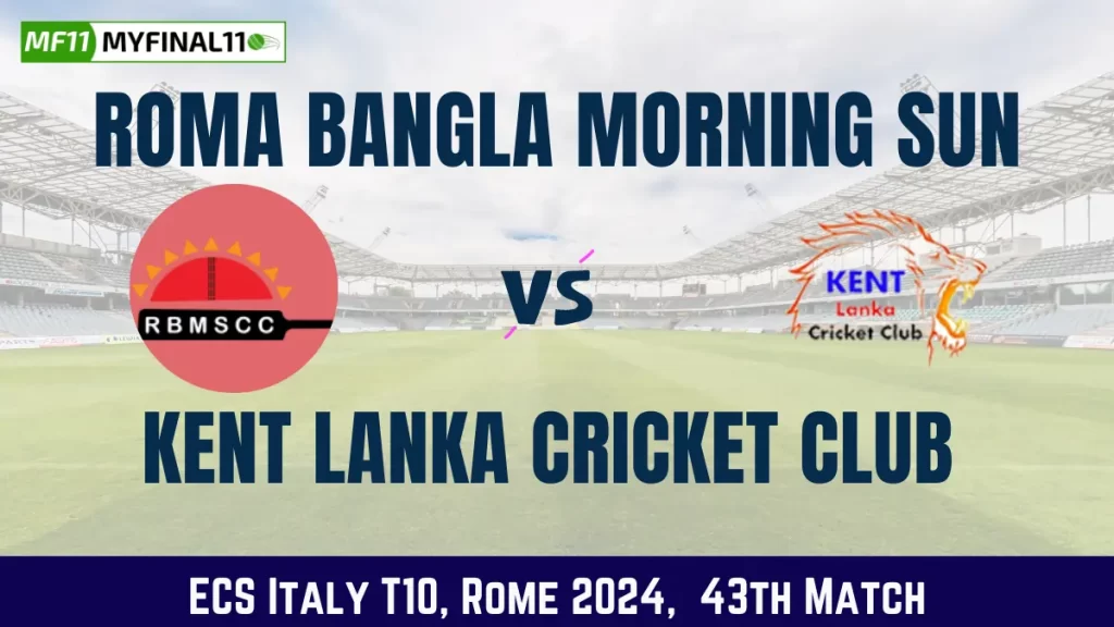 Match 43 of ECS Italy T10, Rome will feature Roma Bangla Morning Sun (RBMS) vs Kent Lanka Cricket Club (KEL) at Roma Cricket Ground, on August 20, 2024, 2:30 PM IST. Read our in-depth, complete RBMS vs KEL Dream11 prediction to get today’s best fantasy cricket tips.