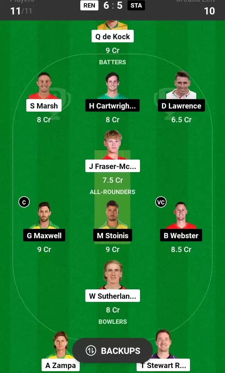 REN vs STA Prediction Fantasy Expert Cricket Team: Australian T20 League Bash 2023