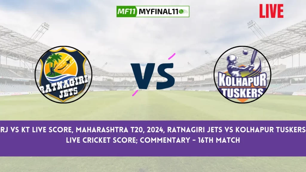 RJ vs KT Live Score – Ratnagiri Jets (RJ ) vs Kolhapur Tuskers (KT) Live Cricket Score RJ vs KT Live Scorecard – The 16th match of Maharashtra T20, 2024 (MPL) Live will begin on Monday, 10th June 2024. The match will be hosted at Maharashtra Cricket Association Stadium, Pune, at 07:00 PM IST. Live Streaming of this match is available on the Fancode, and for Live Score ball-by-ball commentary, Visit Here.