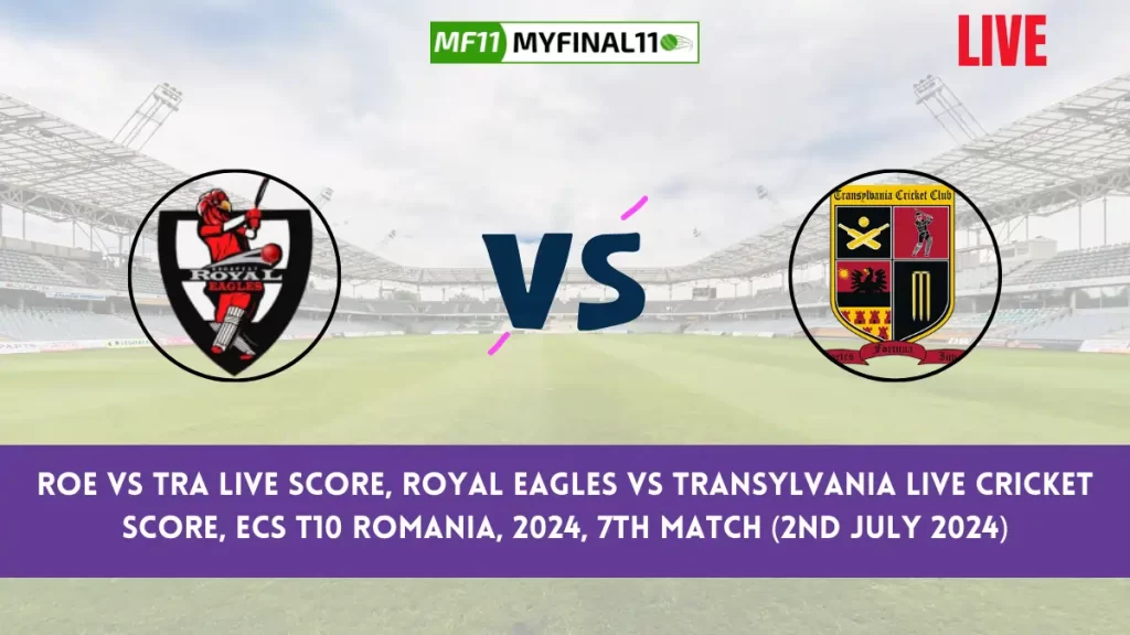 Get live score updates for the ROE vs TRA match as Royal Eagles (ROE) take on Transylvania (TRA) in the 7th ECS T10 Romania, 2024 match. Follow the live score and ball-by-ball commentary here. The match will begin on July 2nd, 2024, at 01:30 PM IST and will be hosted at Moara Vlasiei Cricket Ground, Bucharest. Live Streaming of this match is available on the Fancode, and for ROE vs TRA Live Cricket scorecard ball-by-ball commentary, Visit Here.