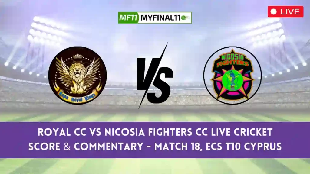 Get live score updates for the ROY vs NFCC match as Royal CC (ROY) takes on Nicosia Fighters CC (NFCC) in the 18th match of the ECS T10 Cyprus 2024. Follow the live score and ball-by-ball commentary here. The match will begin on June 4, 2024, at 12:30 PM IST and will be hosted at Ypsonas Cricket Ground, Limassol. Live Streaming of this match is available on the Fancode, and for ROY vs NFCC Live Cricket scorecard ball-by-ball commentary, Visit Here.