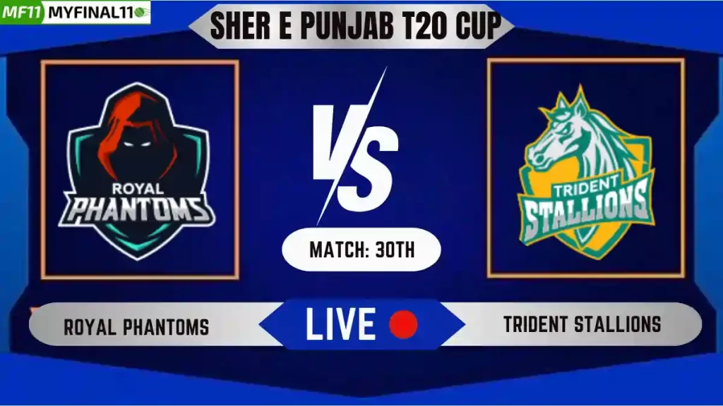 Get live score updates for the RPT vs TDS match as Royal Phantoms (RPT ) take on Trident Stallions (TDS ) in the 30th Sher E Punjab T20 Cup, 2024 match. Follow the live score and ball-by-ball commentary here. The match will begin on June 24th, 2024, at 07:15 PM RPT and will be hosted at Punjab Cricket Association IS Bindra Stadium in Mohali, Chandigarh. Live Streaming of this match is available on the Fancode, and for RPT vs TDS Live Cricket scorecard ball-by-ball commentary, Visit Here.