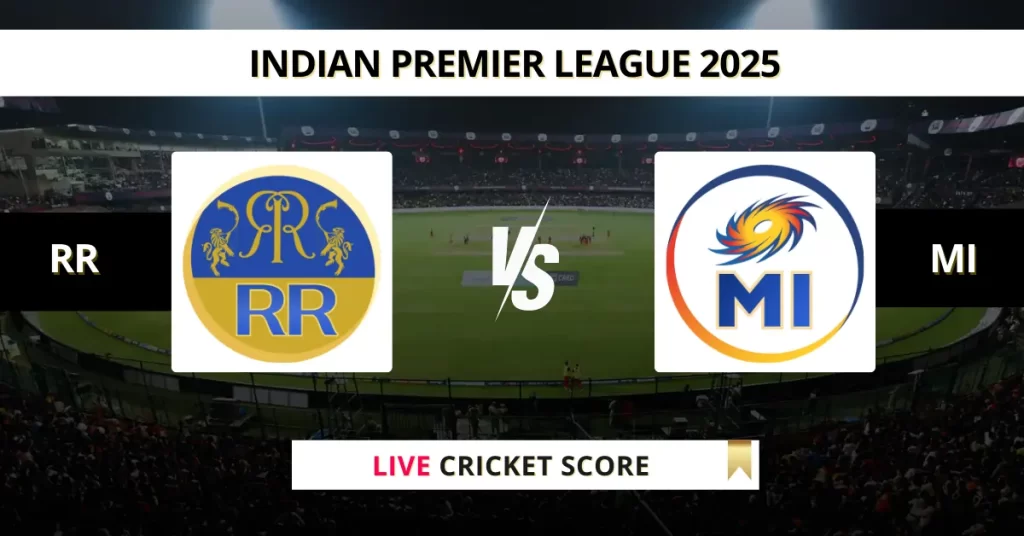 RR vs MI Live Cricket Score — The Rajasthan Royals (RR) vs Mumbai Indians (MI) Match 50 in the Indian Premier League 2025 is set for May 1, 2025, 7:30 PM IST, at Sawai Mansingh Stadium.