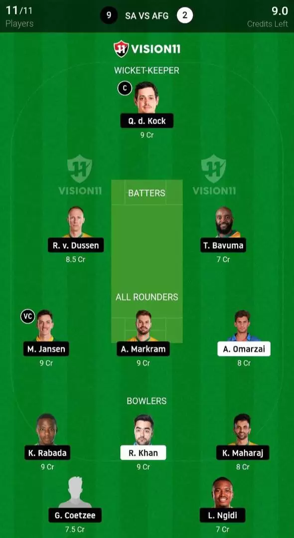 SA vs AFG Dream11 Prediction Today Match Must Have Player?