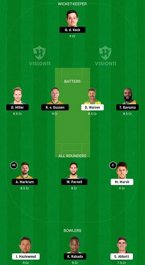 - BAT – D Warner, D Miller, T Bavuma, R van der-Dussen