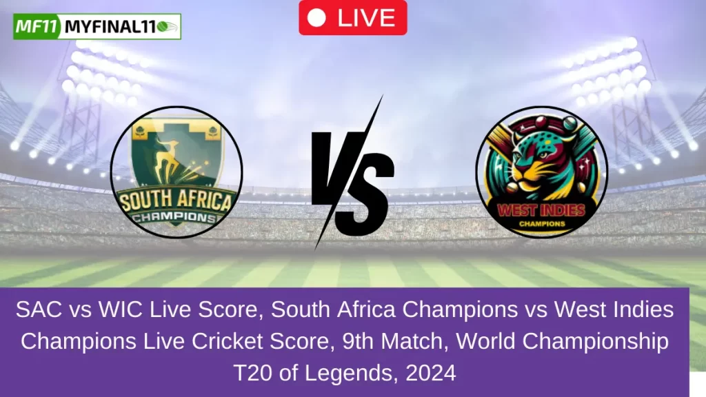 SAC vs WIC Live Score — The South Africa Champions vs West Indies Champions match in the World T20 Championship of Legends 2024 is set for July 7, 2024, at 05:00 PM IST at Edgbaston, Birmingham.