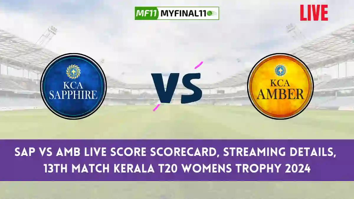 SAP vs AMB Live Score – Team Sapphire (SAP) vs Team Amber (AMB) Live Cricket Score SAP vs AMB Live Scorecard – The 13th match of Kerala T20 Womens Trophy 2024 Live will begin on Saturday, 1st June 2024. The match will be hosted at St Xavier’s College Ground, Thiruvananthapuram, at 09:00 AM IST. Live Streaming of this match is available on the Fancode, and for Live Score ball-by-ball commentary, Visit Here