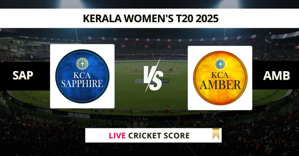 SAP vs AMB Live Cricket Score — The Team Sapphire (SAP) vs Team Amber (AMB) Match 19 in the Kerala Women’s T20 Challengers Trophy 2025 is set fo,r May 14, 2025 8:45 AM IST, at St Xavier’s College Ground, Thiruvananthapuram.
