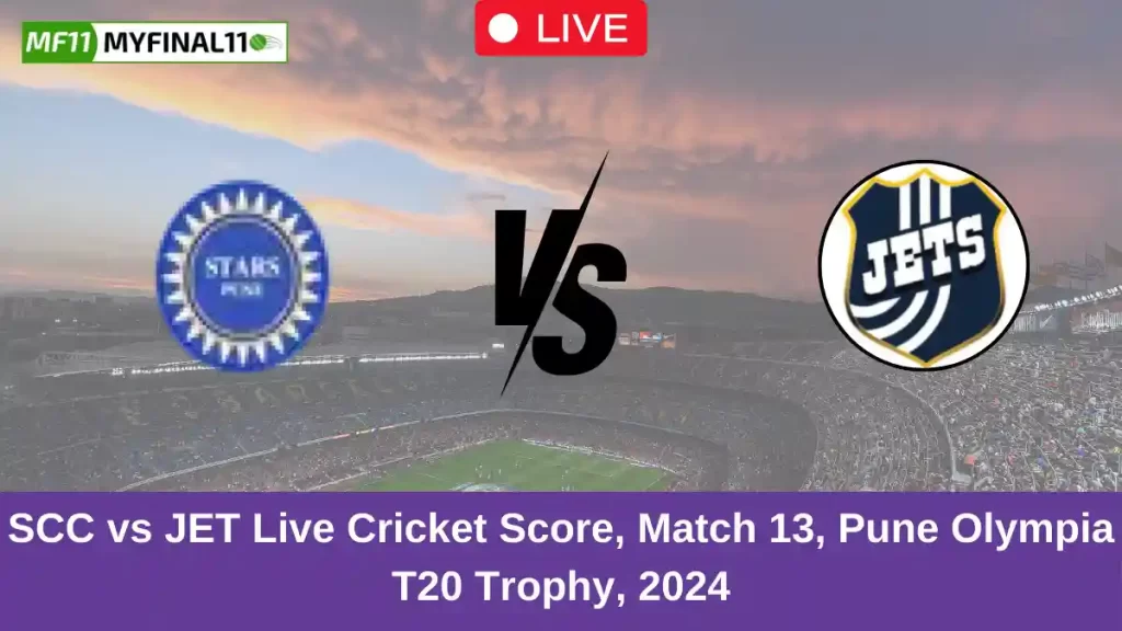 SCC vs JET Live Cricket Score — The Stars Cricket Club (SCC) vs Jets CC (JET) Match 13 in the Pune T20 Olympia Trophy 2024 is set for October 19, 2024, 10:00 AM IST, at Shinde High School Ground, Pune.