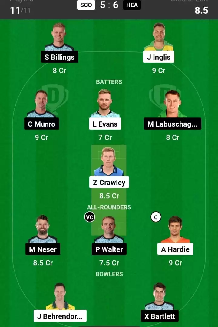 SCO vs HEA Prediction Fantasy Expert Cricket Team: Australian T20 League Bash 2023