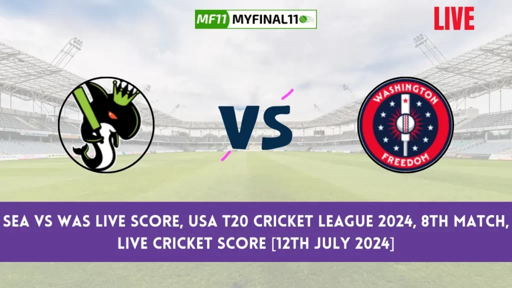 The match will begin on July 12th, 2024, at 06:00 AM and will be hosted at Grand Prairie Stadium, Texas. Live Streaming of this match is available on the Fancode, and for SEA vs WAS Live Cricket scorecard ball-by-ball commentary, Visit Here.