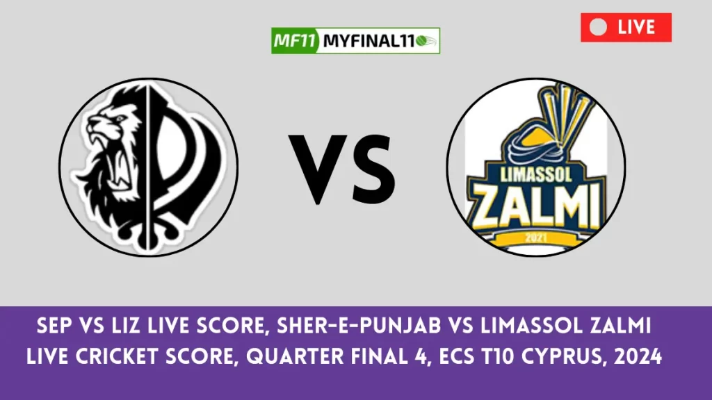 Get live score updates for the SEP vs LIZ match as Sher-e-Punjab (SEP) takes on Limassol Zalmi (LIZ) in the Quarter Final 4 match of the ECS T10 Cyprus 2024. Follow the live score and ball-by-ball commentary here. The match will begin on June 13, 2024, at 4:30 PM IST and will be hosted at Ypsonas Cricket Ground, Limassol. Live Streaming of this match is available on the Fancode, and for SEP vs LIZ Live Cricket scorecard ball-by-ball commentary, Visit Here.