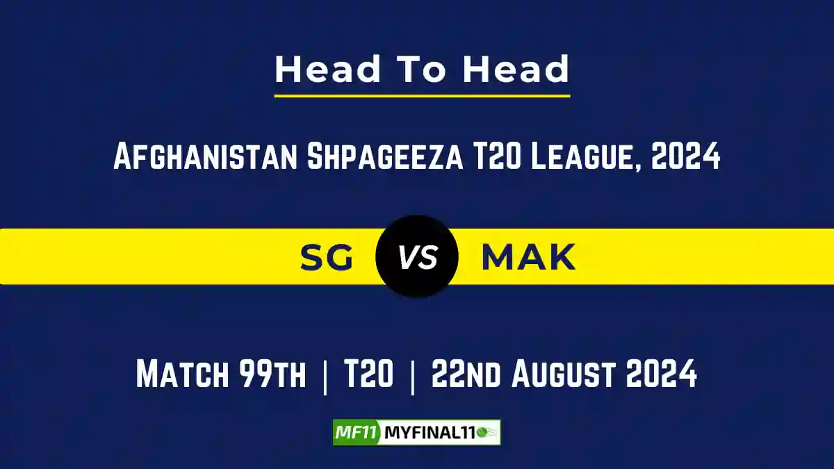 Get all the SG vs MIK player battle stats, records, and head-to-head between Speen Ghar Tigers (SG) and Mis Ainak Knights (MIK). This is the 19th Match of the Afghanistan Shpageeza T20 League 2024 tournament, held at Kabul International Cricket Stadium, Kabul, on August 22nd, 2024, at 10:00 AM IST.