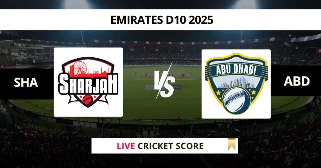 SHA vs ABD Live Cricket Score — The Sharjah (SHA) vs Abu Dhabi (ABD) Match 35 in the Emirates D10 2025 is set for May 28, 2025, 9:00 PM IST, at Sharjah Cricket Stadium.