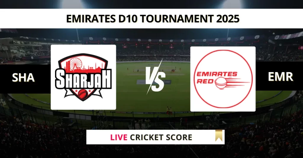 SHA vs EMR Live Cricket Score — The Sharjah (SHA) vs Emirates Red (EMR) Match 25 in the Emirates D10 2025 is set for May 26, 2025, 4:00 PM IST, at Sharjah Cricket Stadium, Sharjah.