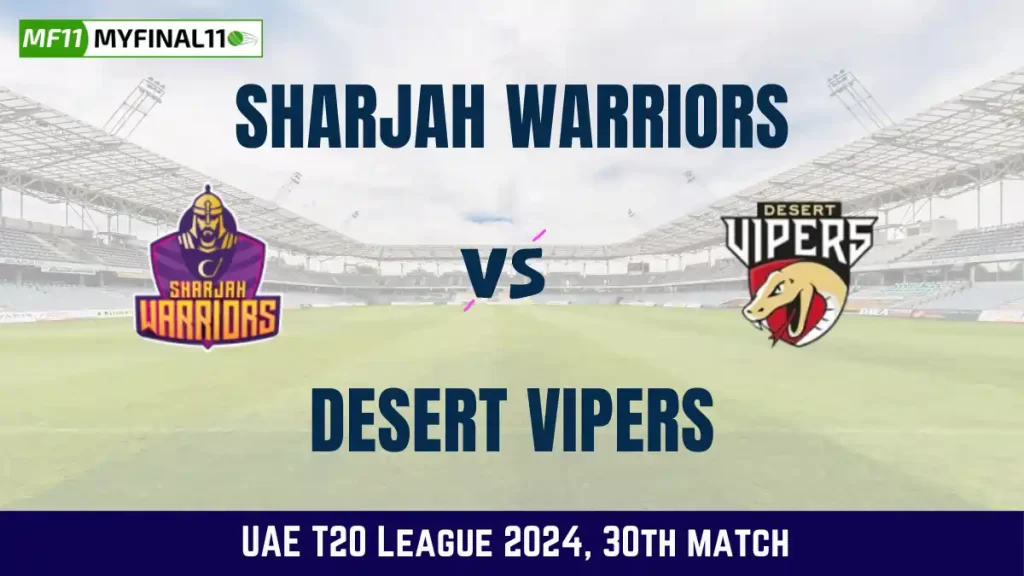 SJH vs VIP Live Score: Sharjah Warriors is set to take on Desert Vipers on 11th Feb 2024, at Dubai International Cricket Stadium, Dubai. If you are looking for Today’s SJH vs VIP live cricket score then you are at the right place. The 30th Match of UAE T20 League, 2024 Live scorecard of Sharjah Warriors vs Desert Vipers with a Match report, ball-by-ball commentary, & highlights of Sharjah Warriors vs Desert Vipers Match details, Match preview, points table position.